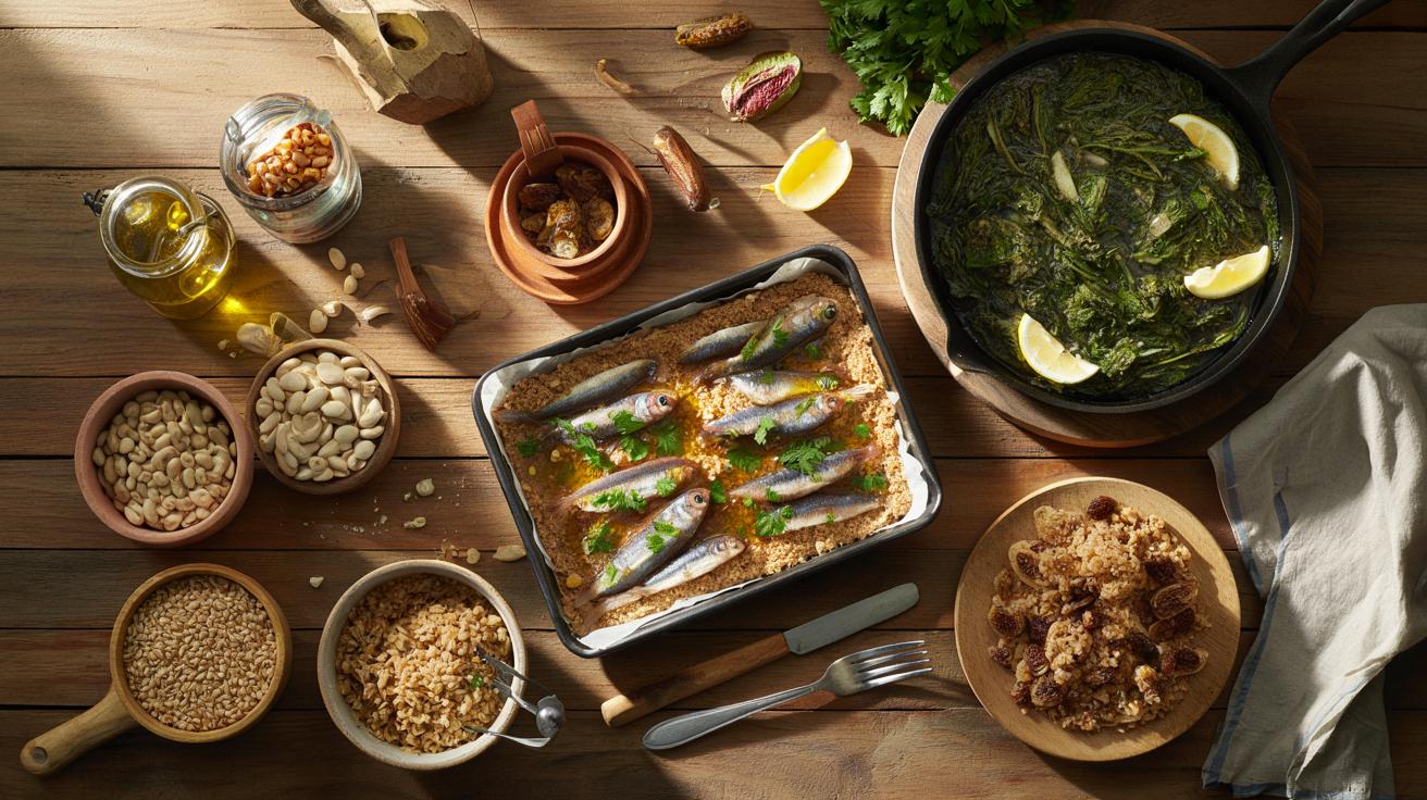 Riannodare i fili non significa tornare indietro. Significa rimettere in circolo cinque alimenti chiave della nostra tradizione che fanno gola ai nutrizionisti: **erbe amare** (cicoria, tarassaco), **legumi antichi** (cicerchie, fave secche, lupini), **pesce azzurro** piccolo (alici, sarde, sgombro), orzo e farro integrali, fichi secchi e uva passa. La logica è semplice: fibra, omega-3, minerali e zuccheri naturali che dialogano bene con il nostro microbiota e con la vita reale.